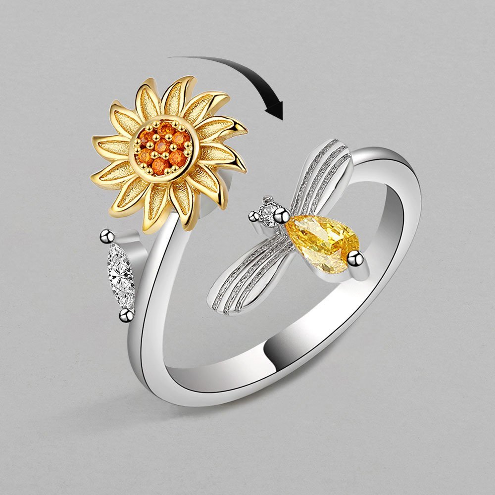 Home > Adjustable Sunflower Rotating Ring With Zicron Simple Versatile Popular Anxiety Relief Ring