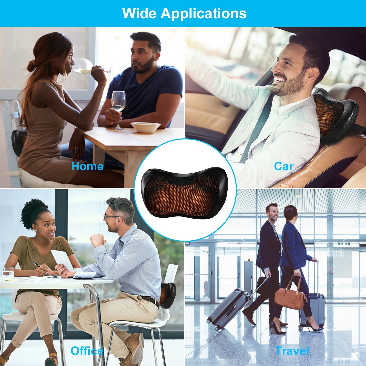 **Ergonomic Design and Widely Used*:Our pillow massager fits perfectly behind neck and body contours of lower/upper back,abdomen,waist,calf,and thigh areas. Optimal for white collars,drivers and your family members. An ideal gift for your partners or parents.