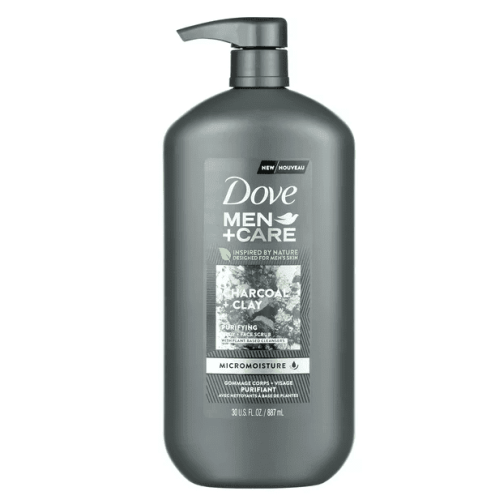Healthy-looking skin means choosing the right men’s body wash. A shower gel like Dove Men+Care Charcoal + Clay Body Wash; with clay and charcoal; for skin that’s left feeling renewed and refreshed. With the effective Men+Care formula; infused with the power of Dove Men+Care Elements; this body wash for men provides thorough cleansing and a powerful boost of freshness. Specifically developed for men’s skin and recommended by dermatologists; Dove Men+Care brings you Dove Men + Care Charcoal + Clay Body Wash infused with a combination of unique; straight-forward ingredients. Formulated with MICROMOISTURE technology that activates on skin; this formula is clinically proven to help fight skin dryness. The refreshing new formula inspired by charcoal; known to draw out dirt; oil from the skin; and clay; known to act as a natural purifier and blending bergamot; cardamom and cypress with the earthy tones of nutmeg for a restorative freshness. Try an evening shower with Dove Men+Care Charcoal + Clay Body Wash to relax from a taxing day. For best use; while showering; squeeze enough Dove Men+Care Charcoal + Clay Body Wash to cover half the palm. Rub hands together until the gel begins to foam. Wash body and face and rinse thoroughly.
