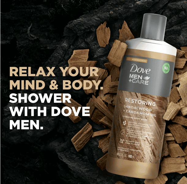 RESTORING AND REFRESHING: Try Dove Men+Care Sandalwood + Cardamom Oil Body Wash for healthier; smoother skin. This body wash features a warm; inviting scent to leave you feeling restored