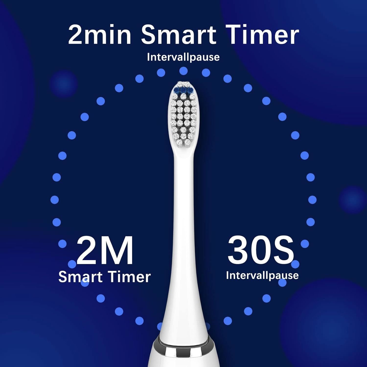 Smart design: the built-in 2-minute timer helps you keep the 2 minutes cleaning time recommended by dentists and dental hygienists. And the 30s interval timer signals the change to the next quadrant. 5s smart memory system automatically saves your last cleaning mode, the next time you do not have to select the mode again.Sonic technology: removes more plaque than a conventional manual toothbrush with gentle sound technology and 40,000 brush head movements per minute5 modes for different conditions of teeth and gums: electric toothbrush with 5 modes for adults. Clean for daily cleaning; white - for the removal of stubborn discolourations; polish - for lighter teeth; soft - for beginners or sensitive teeth; sensitive - specially designed for sensitive teeth gentle care of the teethFully charged to empty: the lithium-ion battery allows an operating time of up to 12 - 15 weeksBox contents: 1 electric toothbrush with charging station, 4 replacement brush heads