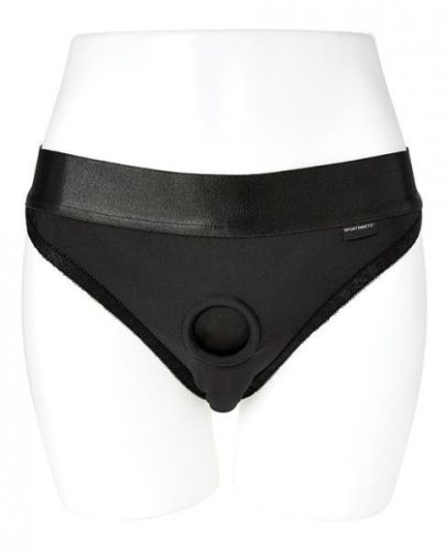 Sportsheets Em Ex Silhouette Harness Medium. Comfortably fun, all day wear. An active life style demands a comfortable, all day, all night harness. Em Ex was designed for durability, comfort, and fit. The soft fabric provides stretch while keeping accessories firmly secure. With its durable elastic waistband and nitrile rubber O-ring, you can fly the friendly skies as TSA will never know you are wearing it.