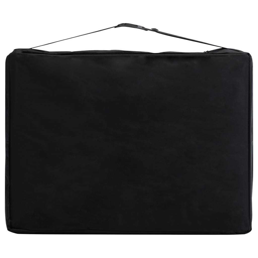 The cushion, padded with thick foam, is highly comfortable and resistant to a suitable concentration of disinfectants and massage oil. The headrest and arm supports are adjustable, along with the height of the table, enabling its user to lie comfortably and the massage therapist to select the desired working height. The carrying bag is included for easy transport and storage.