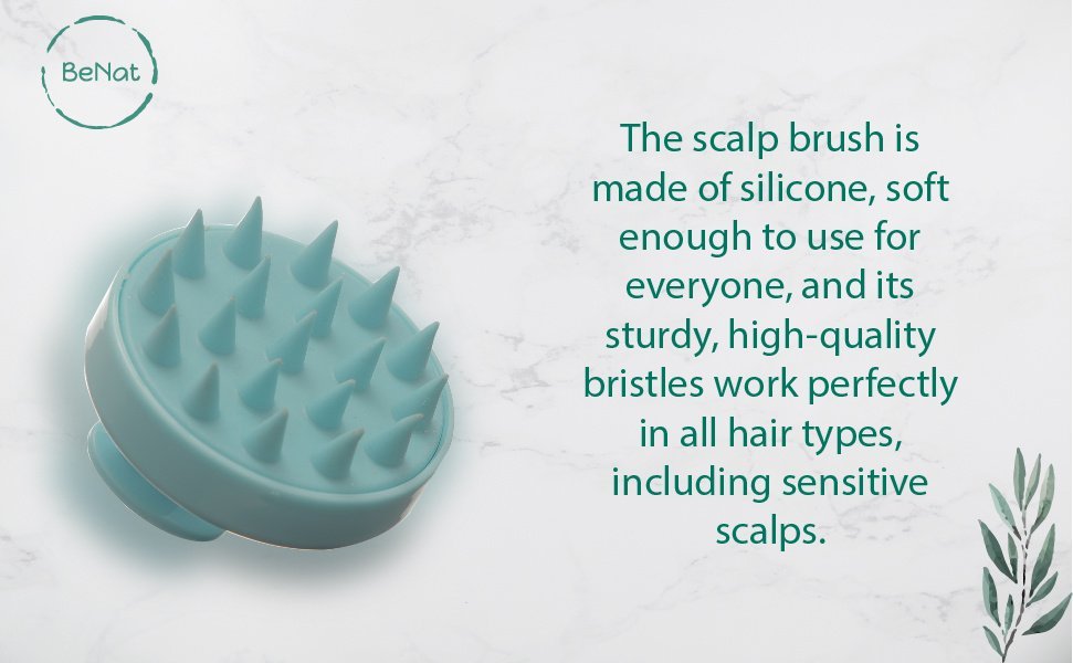 The scalp brush is made of silicone; soft enough to use for everyone. Its sturdy; high-quality bristles work perfectly in all hair types; including sensitive scalps.