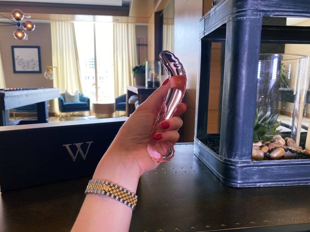Meet Juno – this hand-crafted and expertly curved glass anal plug and dildo brings out the most powerful vibes for its users.  Exemplifying what makes a classic glass dildo so great, Juno is the choice whether you are new to sex toys or are more experienced. She is draped in sophisticated swirls and curves to allow for premium stimulation. This unbelievably multitalented V For Vibes curved glass dildo comes with many appealing features to boost your libido! Our female toy is an ideal dual-sided clitoral, G-Spot, and anal stimulator. Also, the plug-shaped end is wonderful for backdoor fun. The light handheld shape makes Juno incredibly convenient and a titillating sex toy for couples and solo sex. Also, both ends are covered with a stimulating well-defined texture.