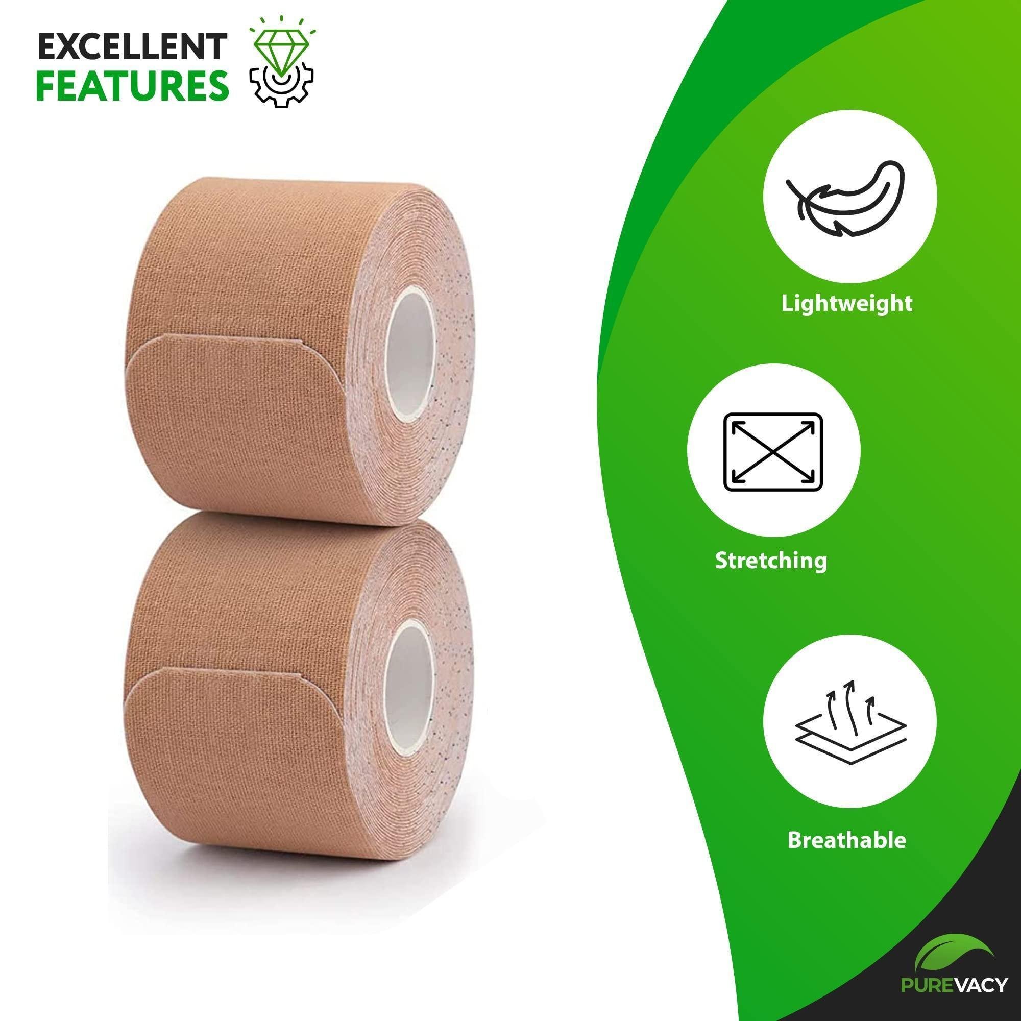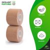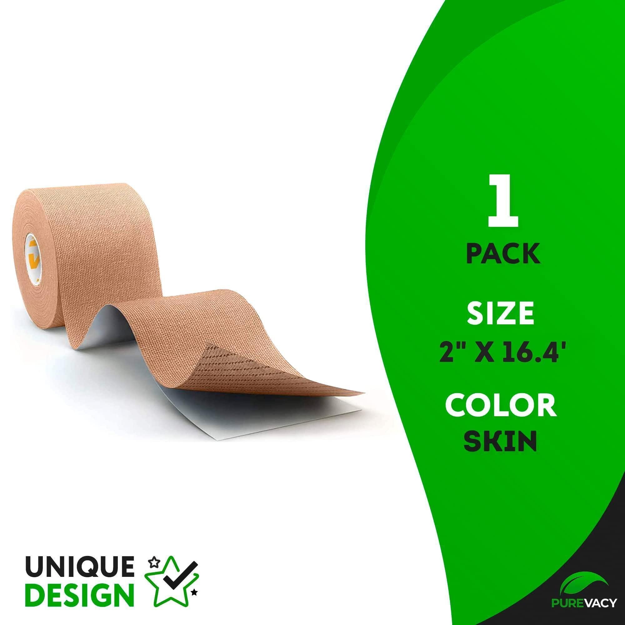 1.1 pack skin color kinesiology tape roll 2 inch x 16.4 feet muscle pain is typical for those engaged in physical activities. that's where muscle tape helps relieve pain and increase healing. elastic cotton kinetic tape roll is light, water-resistant, and highly durable.