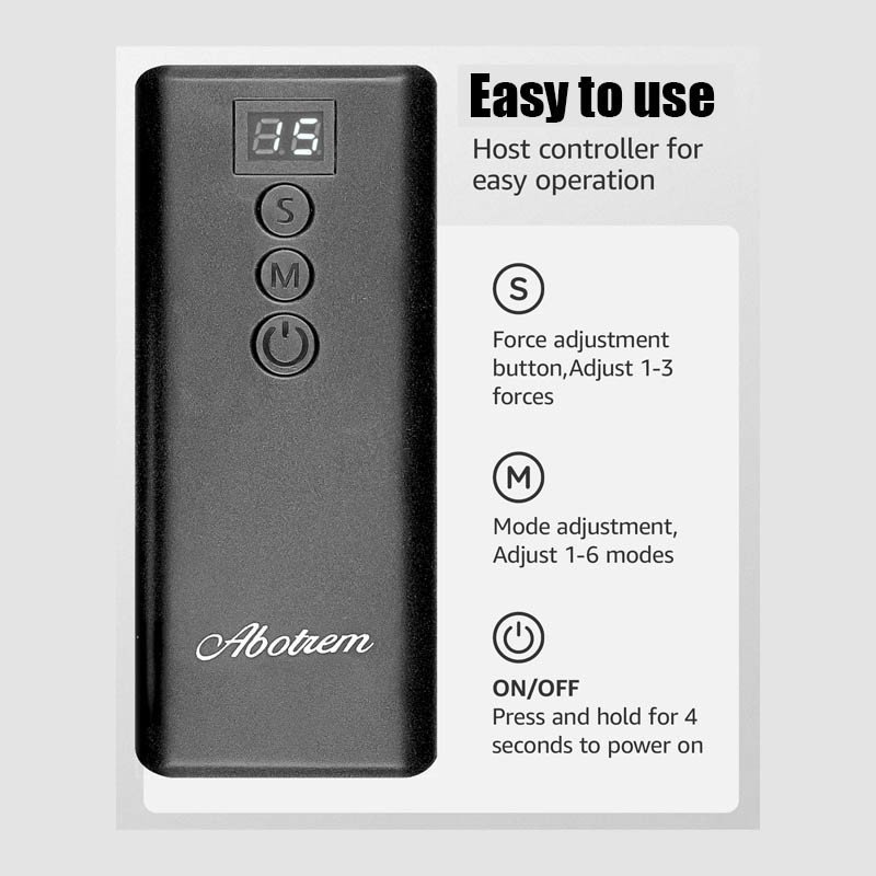 2. Instructions for use: Before use, please check if the massager can start normally. If there is no power, please use the charging cable provided with the massager before use. Separate the Velcro adhesive components of the massager to fully expand the product. The massager is tied to the lower leg area, with the main power button facing upwards and the tightness adjusted appropriately. This product can be used with clothing, and an extension is required for thigh use. The D2 model P5 mode is used for vibration, mugwort heating, and air pressure massage, while the P6 mode is used for mugwort heating and vibration.
