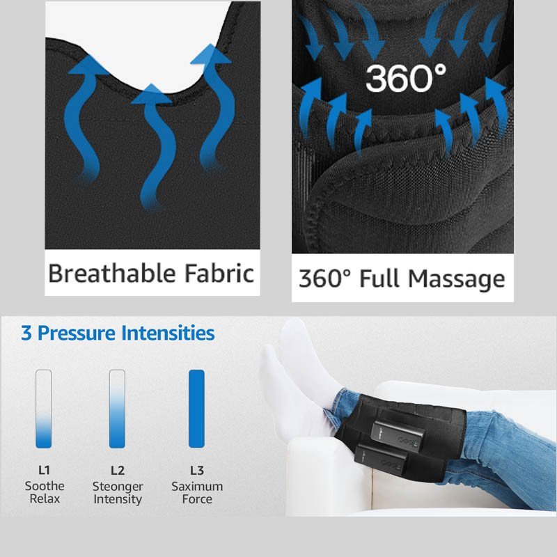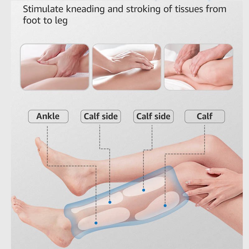 1. The calf massager simulates different massage techniques of lifting, pulling, kneading, and pinching in real people, massaging and stimulating the leg meridians to alleviate leg fatigue.