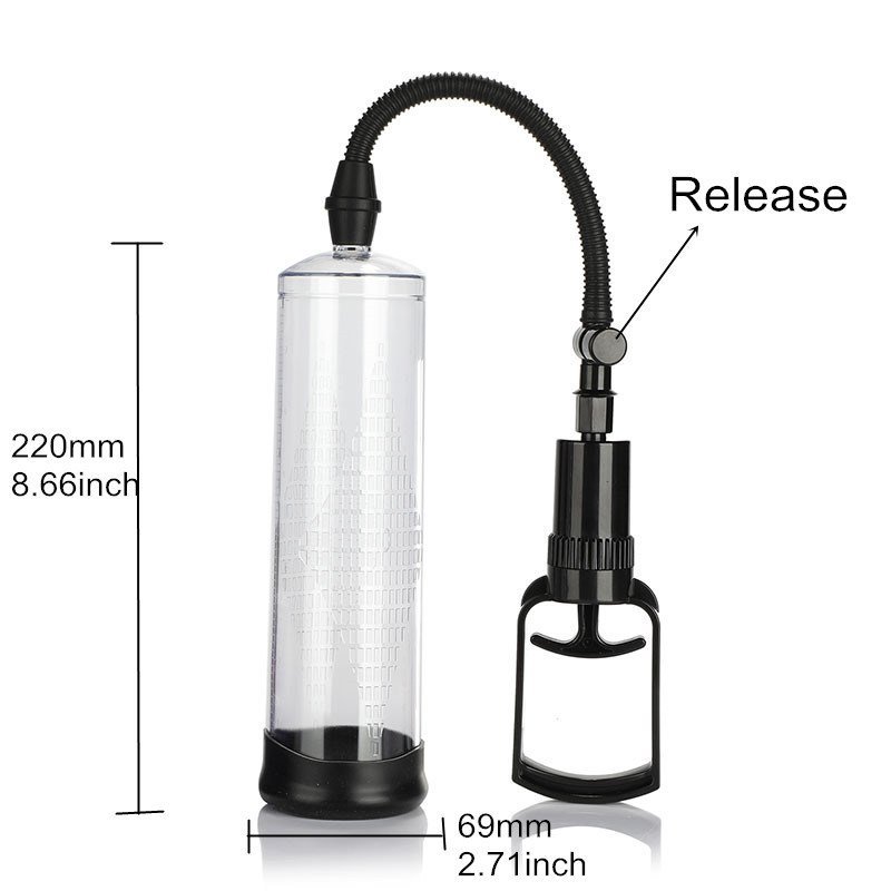 Give your restore confidence, self-esteem and enhance your relationships. The pump uses air to increase the size of your penis. The cylinder is attached to a soft rubber sleeve. Simply place this sleeve over your penis then steadily pump by hand. When the bulb is pumped, air is pulled out of the cylinder, creating a vacuum. This vacuum helps draw more blood into the penis, strengthening the tissue and causing an erection.