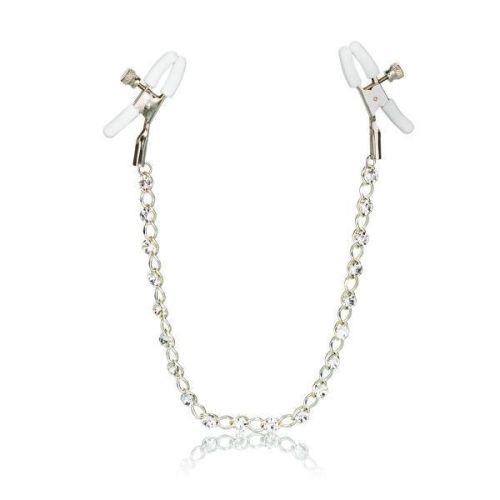 Nipple Play Crystal Chain Nipple Clamps from California Exotic Novelties. Push sensation to the next level and enjoy teasing nipple play with the Nipple Play Crystal Chain Nipple Clamps. Explore elevated sensation with the 2 fully adjustable nipple clamps, teasing chain and sparkling crystals. Reach new levels of playful pleasure with the adjustable clamps. Clamp the naughty clasps to your body and enjoy every rush of pain and pleasure. The teasing clamp has adjustable tension to stimulate anywhere on your body for playful teasing.