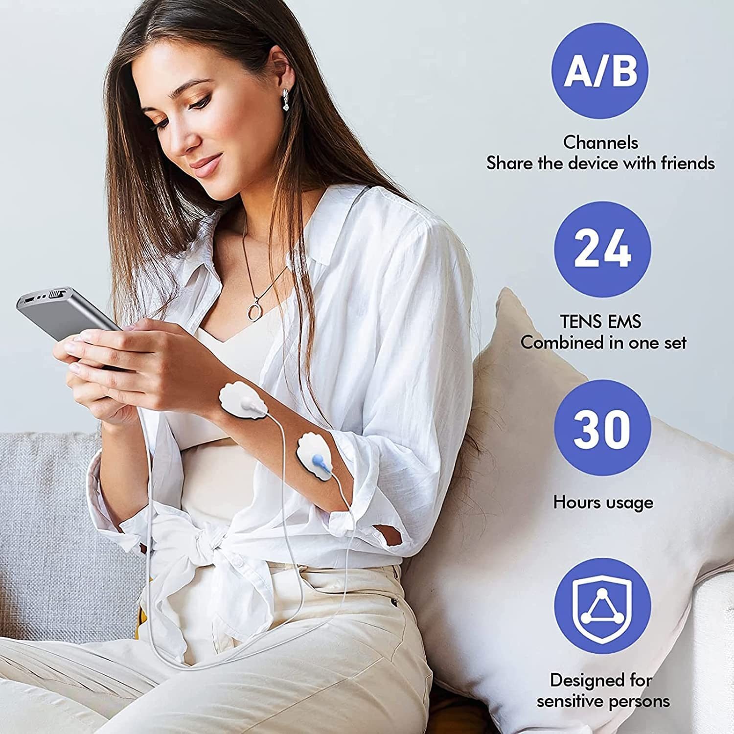 Use the stim machine pads on dry; flat areas with no perspiration or oil.If you wash pulse massager pads under the tap; please let them dry naturally.Make sure to apply pair of latex-free self-adhesive electrotherapy pads to your skin; if you only use one pad; it won’t perform efficiently.