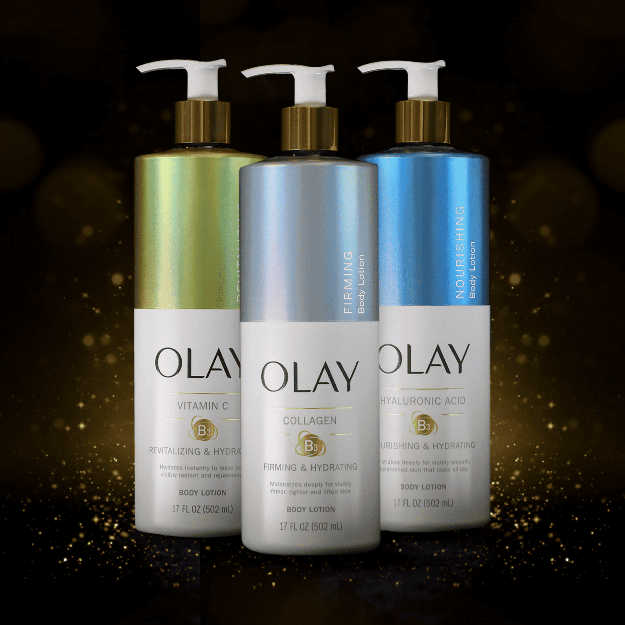 Fortify your skinâs foundation with olay firming & hydrating body lotion. This moisturizing lotion has a nutrient-rich formula crafted with collagen and our vitamin b3 complex and was created specifically to tighten and plump skin while diminishing fine lines. Why add vitamin b3 complex into your routine? Itâs the ultimate skin-improvement ingredient. Vitamin b3 allows your skin to hold on to water so it can become its own moisturizer. It also leaves you with skin that acts younger, feels softer, and looks smoother. You can expect a visible skin transformation without the greasy residue that other types of body cream can leave behind. This body cream also absorbs quickly, penetrating skin up to 10 layers deep, leaving your skin with long-lasting smoothness and increased skin cell turnover. Make sure you take a minute to appreciate its lovely packaging - it is definitely worthy of your counter space. Use daily all over your body during your morning or evening routine. Use with olay skin care-inspired body wash to boost effects of vitamin b3 complex and moisturizing ingredients.