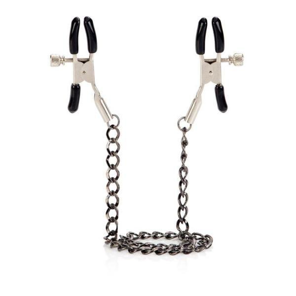 <span style="font-family: sans-serif; font-size: 13.3333px; text-align: justify; text-indent: 13.3333px;">First Time Fetish Nipple Teasers. First Time Fetish a high quality collection of playful fetish gear designed for first time or experienced users. Explore your pleasure/pain threshold with the First Time Fetish Nipple Teasers. The fully adjustable nipple clamps make a great addition to a fetish or intimate toy collection. Use them to experiment and heighten sensual sensations and orgasmic satisfaction. Tease and please your lover by taking full control and tweaking the clamps.<br /><br /> The Nipple Teasers are made from nickel free iron and consist of a strong metal chain, measuring 12.75 inches, with a pair of fully adjustable clamps attached to each end. The clamps are fitted with soft, phthalate free PVC pads for a comfortable fit. To use, squeeze to open the clamps fully and position directly on the nipples. You can adjust the secure fit by gently twisting the screws. Tightening the screws enhances pleasurable sensations. To test sensitivity even further, you can also pull on the metal chain. <br /><br />This toy is suitable for first time or experienced users and is designed to balance the discomfort of pain with the stimulation of pleasure. The Teasers are ideal for BDSM, fetish role plays and exotic experiences. Use them along side other accessories to create an arousing and memorable encounter. When not in use, it is recommended that you keep the nipple clamps clean by spraying them with a toy cleaner.</span>