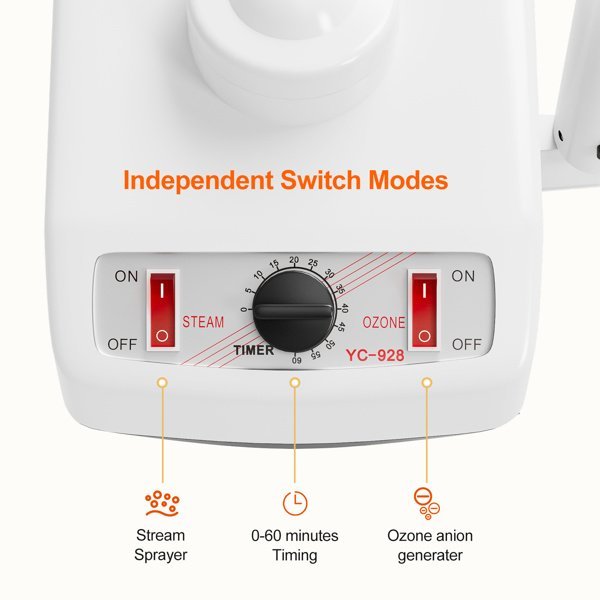 • [Professional Facial Steamer]Includes 2 separate switch modes, one for ozone and the other for spray/steam operation. our facial steamer uses ozone anion and boiling water to produce ozone infused steam. The ozone loosens dirt and oil trapped in the pores and adds hydration to make your skin feel supple and maintain vitality.