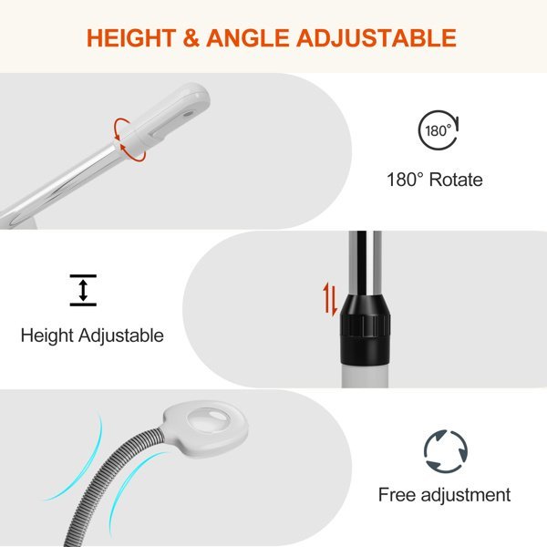 • [5X Magnifying Lamp]Super clear magnifier LED light with table fixing clamp and 5 times magnifying lens, which glows soft, no pollution, no glare and will not hurt neither your nor your clients' eyes, assured to use it gives you ability to observe and makes details clear.