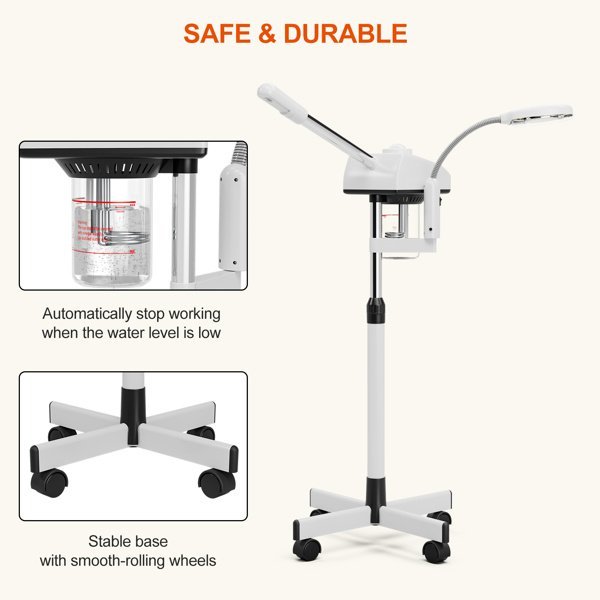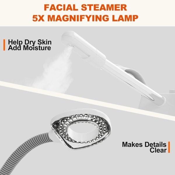 Home > Professional Facial Steamer for Esthetician, 2 in 1 Rolling Facial Steamer with 5X Mag Lamp